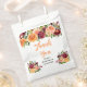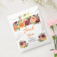 Diese schöne und elegante Hochzeitsgunst-Tasche enthält Wasserfarbe-Burgundrot und orangefarbene Blumen mit Laub. Der Text kombiniert handgeschriebene Schrift und Serifenschriften für ein stilvolles und modernes Aussehen. Dies ist perfekt für eine herbstliche rustikale Hochzeitsfeier.