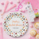 Dieser hübsche und elegante Teller besticht durch seine bordeauxroten und orangefarbenen Blume mit Blattwerk. Der Text kombiniert handgeschriebene Skript- und Serif-Schriftart für ein stilvolles und modernes Aussehen. Dies ist perfekt für einen Herbst rustikalen Brautparty.