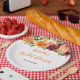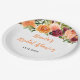 Dieser schöne und elegante Teller zeigt Wasserfarbe-Burgunderrote und orangefarbene Blumen mit Laub. Der Text kombiniert handgeschriebene Schrift und Serifenschriften für einen stilvollen und modernen Look. Dies ist perfekt für eine herbstliche rustikale Brautdusche.