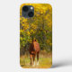 Ein hübsches Kastanienpferd, das durch das herbstliche Laub geht, macht dies zu einem besonderen und einzigartigen Telefongehäuse.