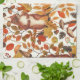 Herbst-Eichhörnchen und Herbstflora auf Weiß Geschirrtuch
