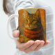 Stilvoll mit "Herbst Whiskers" - eine gemütliche Katze in einem Schal, umgeben von Herbstlauben, perfekt auf einer saisonalen Kaffeekoche Tasse.