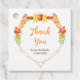Dieses schöne und elegante Hochzeitsdanken Sie Gunst Tag bietet Aquarellpomegranat, Äpfel, Trauben, Pilze und Blattwerk auf einem goldenen geometrischen Rahmen. Der Text kombiniert handgeschriebene Skript- und Serif-Schriftart für ein stilvolles und modernes Aussehen. Das ist perfekt für eine rustikale Herbstsonntagsgeburt.