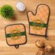 Herbst Erntedank Pumpkins Orange Striping Ofenhandschuh & Topflappen-Set