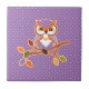 " Es ist Herbst! Ergreifen Sie diese niedliche Polkapunkteule für Ihre Feiertagstabelle. Entwurf umfaßt eine große lila Tupfeneule, die auf einer Niederlassung sitzt, die in weißem und in Orange umrissen wird. Der Hintergrund auf dieser entzückenden Fliese ist lila mit weißen Tupfen."