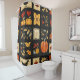 Dieser Duschvorhang zeigt ein Volkskunstwerk, das mit rustikalen und herbstlichen Motiven gefüllt ist. Es ist in einem quadratischen und rechteckigen Gitter angeordnet und bietet Kürbisse, fallende Blätter, Vögel, Herzen und Sterne, die alle in einem gemütlichen, primitiven Stil gehalten sind. Die warme, erdfarbene Farbpalette aus Orange, Braun, Gold, Schwarz, Rot und Creme schafft eine inspirierte Ästhetik für Herbst, Erntedank, Bauernhaus und Landleben. Mit sichtbaren Nähdetails und einem hausgemachten Charme verkörpert dieses Muster das traditionelle, handgefertigte Aussehen des rustikalen Quilts während der Saison.
