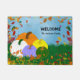 Bild einer Herbstszene mit Blätter, die auf Kürbis fallen.
