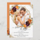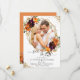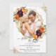 Diese elegante Save the Date-Karte bietet Aquarellfarben-Blume in Herbstfarben und Ihr LieblingsFoto in einem goldgeometrischen Rahmen und goldenen Glitzer Akzente. Im hinteren Teil befindet sich der Herbstbouquet mit goldenem Akzent auf orangefarbenem Hintergrund. Einfach anpassen, indem Sie auf die Schaltfläche "Personalisieren" klicken. Ideal für Herbst/Herbst Hochzeiten.