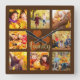 Erstellen Sie Ihre eigene 8-Foto Herbst/Herbst-Mauer. Fügen Sie Ihre Lieblings-Fotos zu dieser braunen Uhr mit orangefarbenen Herzen und goldenen Pinselschrift "Family".