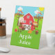 Dieses niedliche und unterhaltsame Schild zeigt ein blondes Haarmädchen mit einem Korb aus Äpfeln und einer Vogelscheuche und Krähe. Im Hintergrund befindet sich eine knallrote Scheune, ein brauner Heftzaun, Bäume, Sonnenschein, Kürbisse und Körbe von Mais und Äpfeln. Der Text kombiniert fett und serifenlose Schriftart für ein stilvolles und modernes Aussehen. Dies ist perfekt für eine Herbstgeburtstagsfeier. Grafik von MUJKA