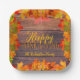 Personalisiertes Erntedank-Papierplatten-Design mit Herbst-Ahorn-Blätter auf einem Stallholz Hintergrund. Der Text ist vollständig anpassbar. Um es zu ändern, verwenden Sie die Option Personalize. Weitere Änderungen, z. B. Änderungen am Schriftart, am Schriftart oder am Textlayout, können Sie mit der Option Design bearbeiten durchführen.
