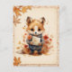 Herbst / Herbst vibes Postkarte mit einem Aquarellfuchs mit einem Buchstaben, umgeben von gefallenen Blätter.