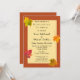 Eine wunderschöne Hochzeitsfeier für Probe für Herbst, Oktober, November, Halloween, Erntedank Hochzeit. Wir haben fallende Blätter in Gold, Rot und Grün auf einem Kürbisgewürzhintergrund mit Goldtextansatz. Sehr hübsche Herbstfarben für Ihre Gäste. Einige Blätter fallen auch auf die Rückseite der Einladung.
