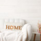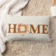 Dieses Kopfkissen wird in einem dezenten Weiß mit einem Herbst-Herbstlaub-Druckdesign mit Zuhause-Text gezeigt. Passen Sie dieses Kissen an oder kaufen Sie, wie es ist.