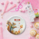 Herbst beleuchtet Geburtstagsparty-Teller mit einem Aquarellhörnchen. Für Herbst-geborene Kinder. Passen Sie dieses Produkt an, indem Sie Ihre Party-Informationen hinzufügen.