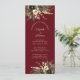 Aquarellfarbene Blumenelemente, die mit Sepia-Ton behandelt werden, Set über eine herbstburgundische Leinwand, fertig mit Elfenbeinkalligraphie..die Namen der Braut und des Bräutigams hervorheben, alle weiteren Veranstaltungsdetails werden in kleineren, modernen Schriftart präsentiert. Das Ergebnis ist ein rustikales Design, das sowohl für lässige als auch für formlichere Hochzeitsmotive geeignet ist. Pair mit passenden Produkten für eine komplette Hochzeitssuite.