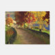 Eine schmale Gasse führt durch eine ruhige Landzunge voller Heufelder und Hecken, die von Steinmauern und herbblühenden Gräsern gesäumt ist. Zwei Katzen spielen in der Spur und an der Wand im Schatten der bunten Bäume.