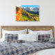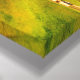 Leinwand Landschaftsbild der Kirche und der Ortschaft St. Magdalena in Villnoess in einer märchenhaften Landschaft mit majestätischen Dolomiten-Bergen im Hintergrund und Blätter in Herbstfarben im Val di Funes Tal in Italien. Eine tolle Dekoration an der Wand!