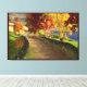 Eine schmale Gasse führt durch eine ruhige Landzunge voller Heufelder und Hecken, die von Steinmauern und herbblühenden Gräsern gesäumt ist. Zwei Katzen spielen in der Spur und an der Wand im Schatten der bunten Bäume.