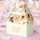 Fall in der Liebe pfirsichfarbenen Rand Dankeschön Gastgeschenk Hochzeit Box. Diese wunderschön gestaltete Gaumenschachtel mit elegantem Blumenrahmen am oberen Teil in einem sanften Aquarellstil. Das Design strahlt ein künstlerisches und romantisches Ambiente aus. Die Grenze selbst ist eine wunderschöne Zusammenstellung von Zweigen, pfirsichartigen Blüten, Nadelkronen, getrockneten Botanikalen und Blätter, die alle in einer warmen Farbpalette aus Pfirsich, Braun, Golden und matt Graugrün gefärbt sind - was die gemütliche Essenz des Herbstes wahrhaft einnimmt. Es beinhaltet auch die Nachricht "Danke" zusammen mit den Namen des Paares und dem Hochzeitstag.