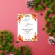 Ein elegantes Design, floral, Blätter mit Ahornbäumen, elegante Kalligraphie, ein "Fall in Liebe" Thema und Goldfolie für den "Fall in Liebe"-Text.