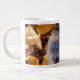 Herbstkatze mit schönen blauen Augen ein Herumtollen im Herbstlaub genießend.