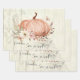 3 Blätter schweres Packpapier mit einem Falldesign, das schön in Aquarell bemalt war. Herbstkürbis mit gebranntem Orangenkürbis und Herbstlauben über einem cremefarbenen, gemalten rustikalen Holz mit eleganten Verzierungen für den ephemera-Drucker, perfekt für saisonale Geschenkspenden, Kunsthandwerk oder decoupage Handgemalte Aquarellkunstwerke von international lizenziertem Künstler und Designer, Audrey Jeanne Roberts, Copyright.