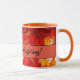 Herbstblätter, Kaffeemaschine mit orangefarbenem Tasse. Ändern Sie Text oder fügen Sie Bilder hinzu und machen Sie es zu Ihrem eigenen.