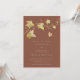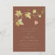 Herbst in Liebe mit diesen modernen und minimalen Einladungen für Herbstduschen. Das saubere, minimalistische Design zeichnet sich durch einen warmen Terrakotta-Hintergrund mit Aquarellfarben-Blätter in Herbstfarben aus. Unter dem Bild wird in sanften, cremefarbenen Schriftzeichen, zusammen mit den Details der Babydusche, "Herbst in Liebe mit dem Baby [Name]" angezeigt.