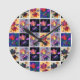 Herbst lässt rustikales Patchwork Quilt Collage Runde Wanduhr