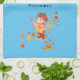 Grosser mit Augen Junge, der im Herbst mit den fallenden Blätter spielt. 2 Texte für die individuelle Gestaltung oder als besonderes Geschenk.