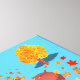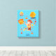 Grosser mit Augen Junge, der im Herbst mit den fallenden Blätter spielt. Himmelblau. Text zur Anpassung Ihrer Dekoration oder als besonderes Geschenk.