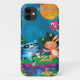 Künstler: Elisa Chavarri | Racoon und Häschen- und Frosch- und Eulentanzen im Teich nachts mit einem großen Herbst moon über ihnen im Himmel