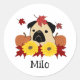 Herbst-Mops mit Blätter, Pumpkins und Sonnenblumen Runder Aufkleber