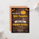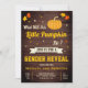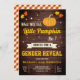 Erleben Sie Ihren Aufenthalt mit diesem niedlichen Geschlecht und lassen Sie sich von einem zauberhaften Kürbis mit lebendigen Elementen in einem rustikalen Stallholzhintergrund verwöhnen. Fügen Sie einfach Ihre Veranstaltungsdetails zu dieser einfach zu bedienenden Vorlage hinzu, um sie zu einer einmaligen Einladung zu machen. Dreh die Karte auf, um ein elegantes orangefarbenes Gingham-Muster auf der Kartenrückseite zu zeigen.