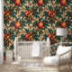 Große, rustikale Früchte und kleine Rot- und Orangenbeeren vermischen sich mit grünen Blätter auf diesem schönen, herbstlichen Tapete. Das ganze Jahr über Farbe in Ihr Zimmer!