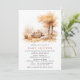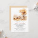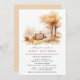 Herbstgefallene Babydusche mit einer Aquarelllandschaft eines Picknicktisches unter orangefarbenen Herbstlauben. Rustikal inspiriert Design mit formalen Skriptakzenten. Der Ereignistext kann geändert werden. (Skripttext kann nicht bearbeitet werden.) Die Rückseite ist in warmen Beige gehalten. (Farben können auf Wunsch mit dem Designwerkzeug geändert werden).