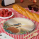 Herbst Robin singt auf einem Kürbiskahn Pappteller