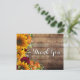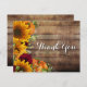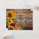 Herbst Rustikal Danke Karte. Eine tolle Karte, wo Sie sich für alles, Hochzeit, Geburtstag und mehr bedanken können!. Gelbe Sonnenblumen, Kürbisse und bordeauxfarbene Rose und der Atem des weißen Babys über einem rustikalen Holzboden. An der Spitze hängen zwinkernde Lichter mit einem Herz.