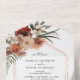 Diese trendige Einladung zum Hochzeitsfeiern mit goldenem Rahmen, Terrakotta und beige Blume, trockenen Aquarellfarben, grünem Blattwerk und bordeauxfarbenen Blume. Neue trendige Herbstkollektion. Alle in einer Einladung beinhalten die Hochzeitsinfo und die UAWG Postkarte, die Ihre Gäste abschicken und versenden. Genießen Sie es!