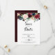 Dieses Herbst rustikale burgundy moderne kalligraphische Hochzeit speichern das Datum ist perfekt für eine einfache Hochzeit. Das Design ist bordeauxrot, rot, mariniert, blau und rot, strahlend und anmutig handbemalte Blume, die die natürliche Schönheit inspiriere.