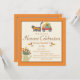 Erntedank oder Ernteeinladung mit einer geschnittenen Katze in einem Schal, einem Wagen mit Kürbis, Blume und Blätter.