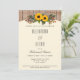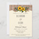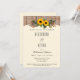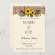Rustikale, schicke, goldene Sonnenblumen auf einem abgewitterten Zaun-Hintergrund auf einem cremefarbenen Kartenhintergrund. Perfektes Herbstthema für Ihre Hochzeitsfeiern im Oktober oder November oder für alle Herbstfeiern. Nehmen Sie einfach eine Umformulierung vor.