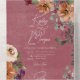 ERHÄLTLICH MIT QR CODE ODER MIT ODER OHNE AUSWAHLOPTIONEN. Stellen Sie sich eine charmante Hochzeitseinladung vor, die die von Ihnen gewünschte rustikale Eleganz perfekt einfängt. Die Einladung enthält einen weinburgundischen Hintergrund, der eine Touch Vintager Anziehungskraft verleiht. Feine Aquarelltöne in Rost-, Bordeaux-, Pflaumen- und Cremetönen schmücken die Einladung und schaffen einen schönen Kontrast zum Hintergrund. Diese ätherischen Blüten verleihen dem Design ein romantisches und skurriles Ambiente, das die natürliche Schönheit eines rustikalen Ambientes widerspiegelt. Die Kombination der rustikalen Elemente, der Aquarellfarben und des angespannten Hintergrunds lädt die Gäste zu einem angenehmen Aufenthalt ein. Erstellt von der einfachen Farmhouse Press.