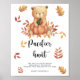 Feiern Sie mit diesem Teddy Bären Thema Baby Dusche Party! Der niedliche Teddybär mit einem Herbstkürbis in seinen Pfoten sitzt im Herbstwald. Matching-Elemente verfügbar.