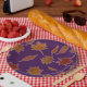 Dekoratives Herbst-Blätter in den verschiedenen Herbstfarben. Die feste dunkle lila Hintergrundfarbe kann besonders angefertigt werden, indem man diese Produkthauptleitungsfarbe justiert. Spielen Sie mit neuen Farbkombinationen, versuchen Sie dunkelrotes und Schwarzes!