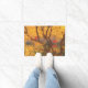 In einem klaren gelben Ahorn hockt ein MannesKardinal und behält Uhr über seinem Kameraden auf der nahe gelegenen Vogelzufuhr.