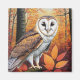 Dieses Kunstwerk besticht durch eine Scheuneneule, die sich in der Herbstsaison in einer Natur im Freien befindet. Ideal für Herbstfreunde und Eukalyptusliebhaber! Die Eule ist von Herbstlauben umgeben, die in dieser warmen Farbpalette in Rot-, Orange- und Brauntönen gehalten sind.