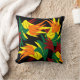 Dieses auffallende dekorative Kissen zeichnet sich durch ein abstraktes Muster von Blätter in allen Herbstfarben aus: Orange, Gelb, Rot und Grün. Das Design wird auf der Rückseite wiederholt.