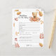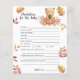 Feiern Sie mit diesem Herbst Teddy Bären thematisch Baby Dusche Party! Der niedliche Teddybär mit einem Herbstkürbis in seinen Pfoten sitzt im Herbstwald. Auf der Rückseite der Karte befinden sich Herbstblätter. Matching-Elemente verfügbar.